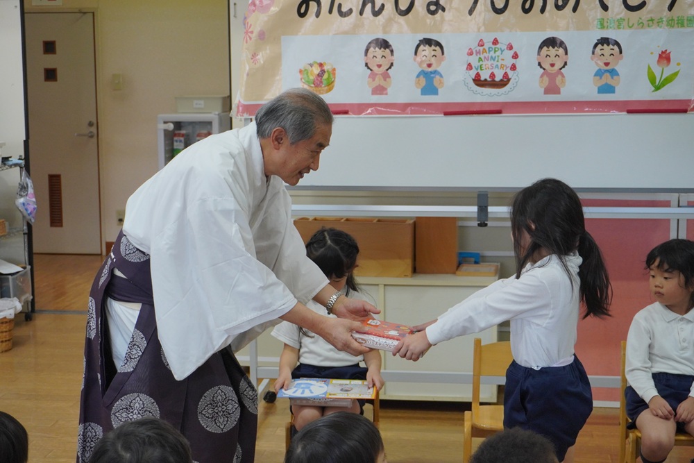 園長先生からお誕生日カードとお誕生日プレートのプレゼントが渡されました✨