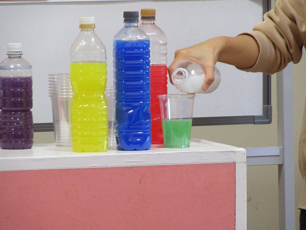 お話がおわると、色水のジュース屋さんの出し物ががありました…✨