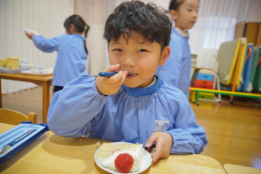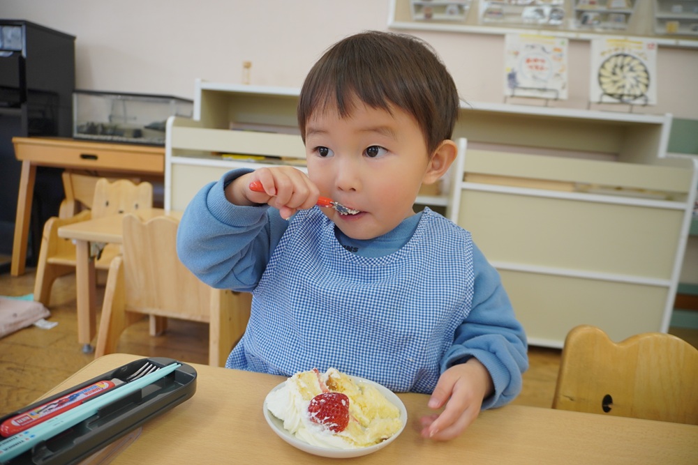 お給食もケーキもおいしいですね✨